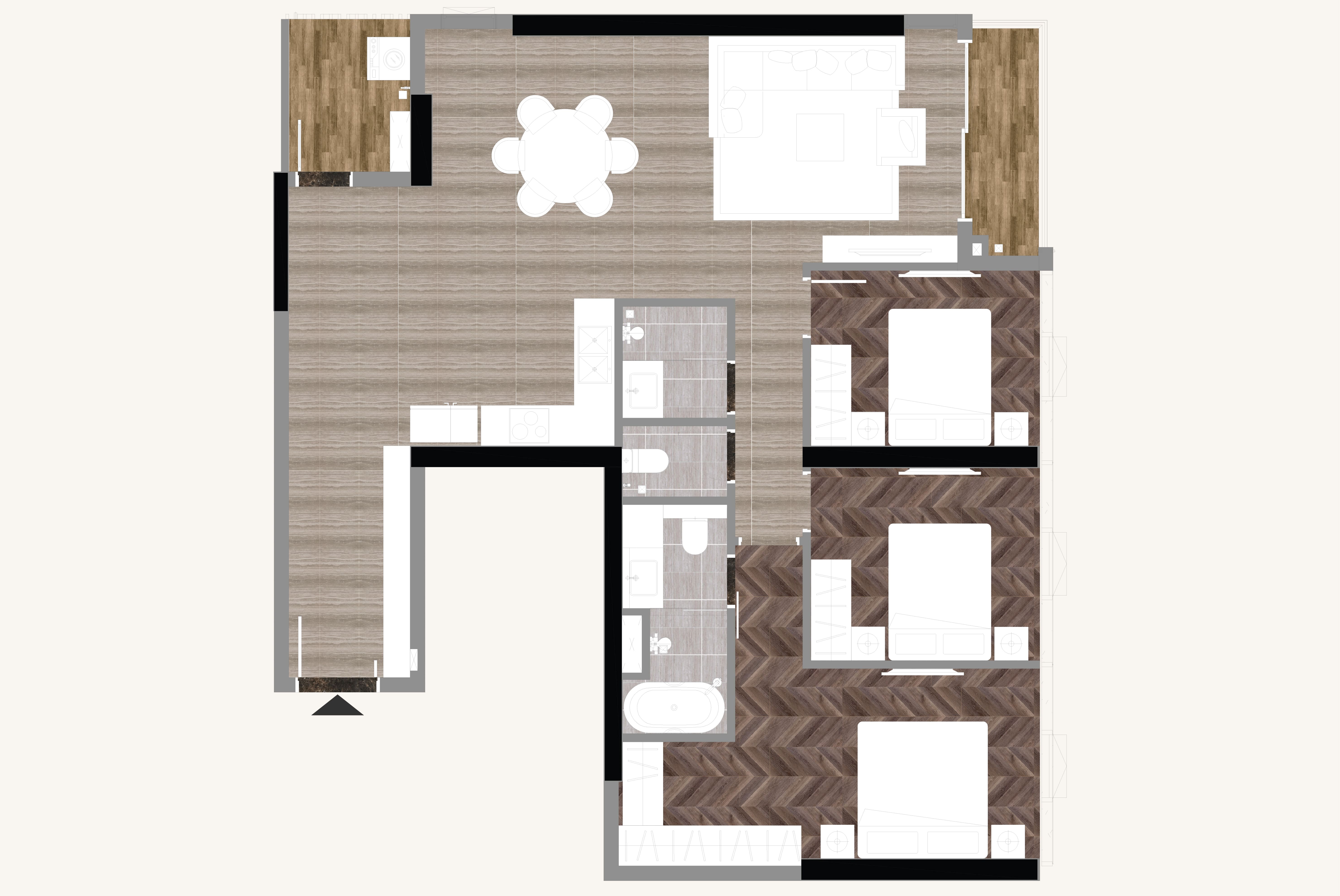 Không chỉ là nơi lưu trú, căn hộ 3PN còn là chốn nghỉ ngơi lý tưởng, nơi Quý khách có thể nghỉ ngơi, quây quần và tận hưởng trọn vẹn vẻ đẹp độc đáo của thành phố trong một không gian riêng tư, tinh tế, và tiện nghi chuẩn quốc tế.